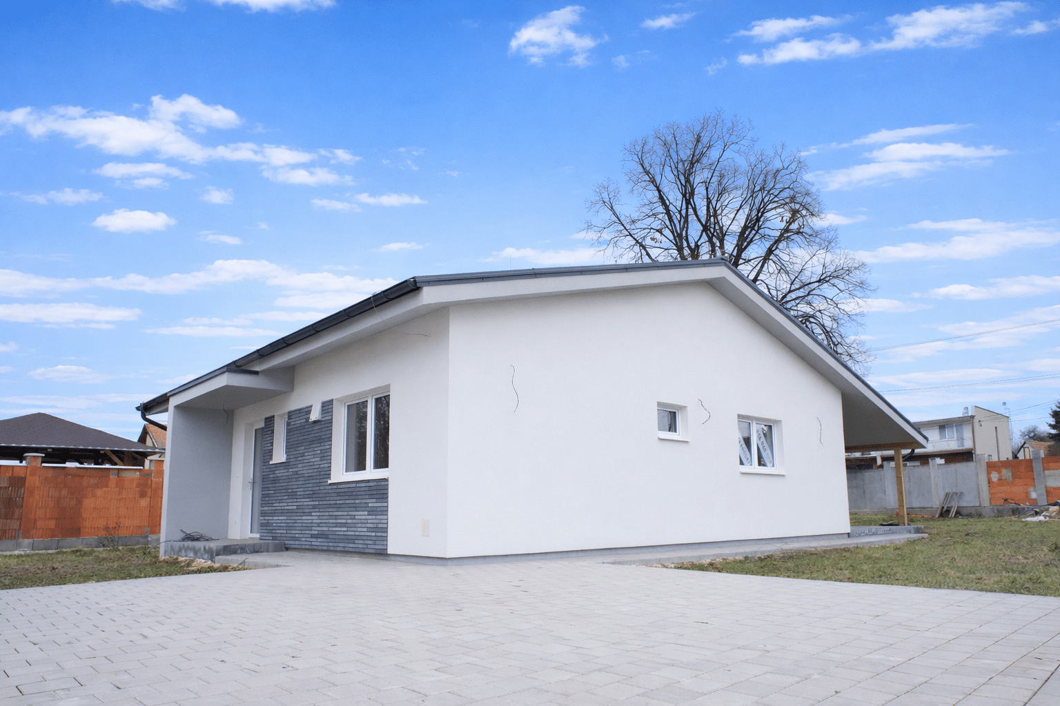 • zámková dlažba v cene (chodníky, terasa, parkovacie státia)